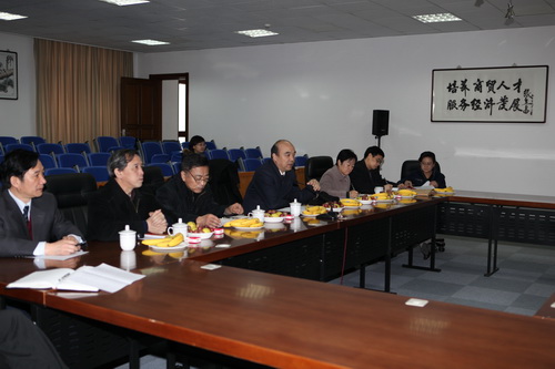 张坤生处长首先介绍了我校 2008 年科研工作取得的主要成绩并结合我校 2009 年党政工作要点,对 2009 年科研工作的主要设想进行了汇报。现代技术中心主任王文利和设备处处长侯其考汇报了我校数字化校园建设和信息化应用的总体情况。经济学院党总支书记白玲就我校申报天津市《产业发展与创新》人文社科基地的筹备情况进行了详细的汇报。